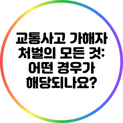 교통사고는 언제 어디서나 발생할 수 있는 매우 흔한 사건이에요. 하지만 사고가 발생했을 때의 처리 방식은 매우 다양하고, 특히 가해자에 대한 처벌은 여러 가지 요인에 따라 달라질 수 있답니다. 오늘은 교통사고의 가해자 처벌에 대해 심층적으로 살펴보려 해요. ✅ 음주 운전으로 인한 사고를 예방하는 팁을 알아보세요! 👉 안전 운전 팁 확인하기 교통사고란 무엇인가요? 교통사고는 도로에서 발생하는 사고로, … Read more